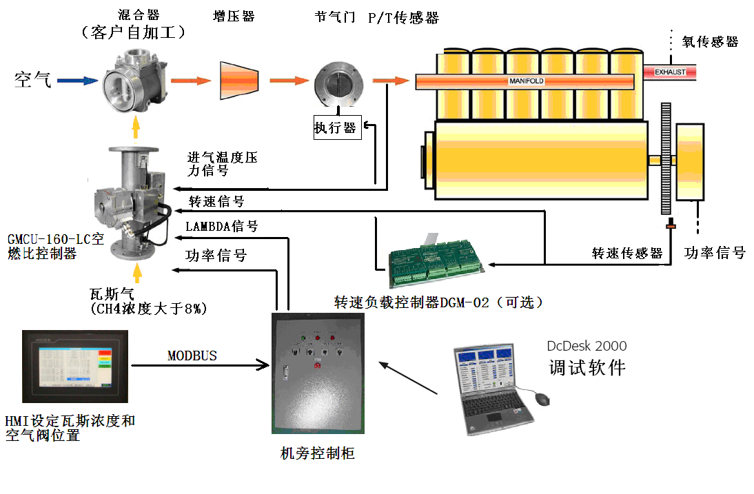 (3)燃?xì)獾膯吸c(diǎn)噴射和空燃比閉環(huán)控制技術(shù),實(shí)現(xiàn)對(duì)空燃比(λ)閉環(huán)控制。發(fā)動(dòng)機(jī)可以按不同工況和不同轉(zhuǎn)速的要求適時(shí)地自動(dòng)調(diào)整空氣和瓦斯氣的量,從而使發(fā)動(dòng)機(jī)在更佳狀態(tài)運(yùn)行。